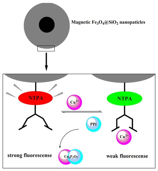 - Tian, X.; Dong, Z.; Hou, J.; Wang, R.; Ma, J. A fluorescent sensor base on magnetic silica nanoparticles for Cu2+ and pyrophosphate mimicking IMPLICATION logic gate. J. Lumin. 2014, 145, 459–465. [Google Scholar] [CrossRef]