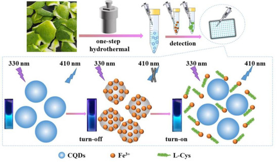 The detection principle for Fe3+ and L-Cys based on CQDs (reproduced with the permission from Ref. [115]).