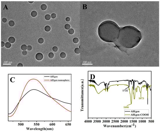 3.3. Fluorescence Spectra and Characterization of AIEgen Nanospheres