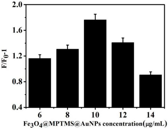 3.4.1. Optimization of Fe3O4@MPTMS @ AuNPs Concentration