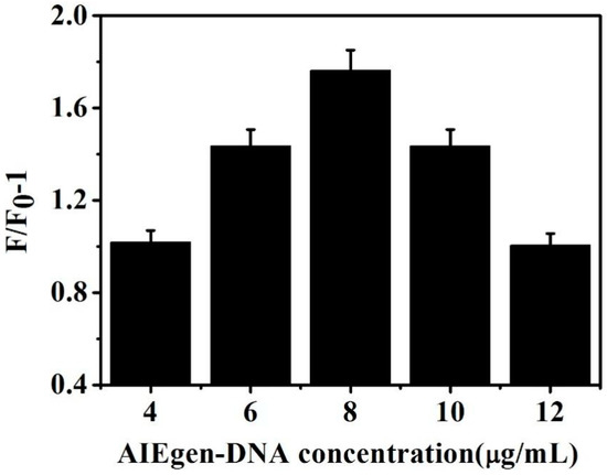 3.4.3. Optimization of AIEgen Aptamer 2 Concentration