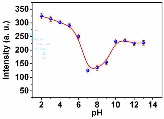 The influence of the pH on the fluorescence intensities of MNC ligand under λexc 312 nm.