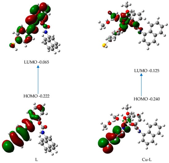 Frontier orbitals and their energies for L and Cu-L.