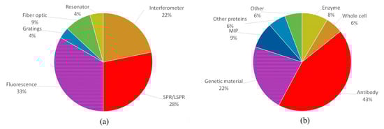 Overall, SPR biosensors has been the most used technique for pharmaceutical detection (see Table 3). Fiber-optic biosensors also stand out, as they offer the lowest LOD using a simple configuration, so more research efforts in this area are pertinent.