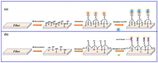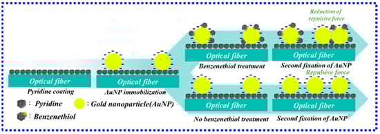 - Zhang, Q.; Xue, C.; Yuan, Y.; Lee, J.; Sun, D.; Xiong, J. Fiber Surface Modification Technology for Fiber-Optic Localized Surface Plasmon Resonance Biosensors. Sensors 2012, 12, 2729–2741. [Google Scholar] [CrossRef] [PubMed]