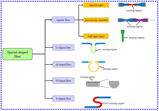 - Li, X.; Chen, N.; Zhou, X.; Gong, P.; Wang, S.; Zhang, Y.; Zhao, Y. A review of specialty fiber biosensors based on interferometer configuration. J. Biophotonics 2021, 14, e202100068. [Google Scholar] [CrossRef] [PubMed]