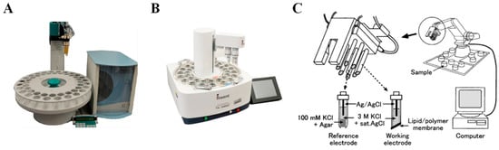 Commercially available E-tongues: (A) Alpha M.O.S E-tongue Astree II; (B) Insent E-tongue TS-5000Z; (C) Insent E-tongue SA402B. Reproduced from [55,57] with permission from Elsevier.