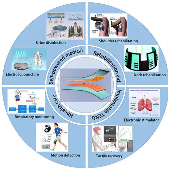 - Tapas, K.; Jinhyoung, P. Highly Sensitive Self-Powered Biomedical Applications Using Triboelectric Nanogenerator. Micromachines 2022, 13, 2065. [Google Scholar]