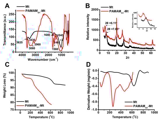 2.3. Modification of Mt with PAMAMG1 Dendrimer