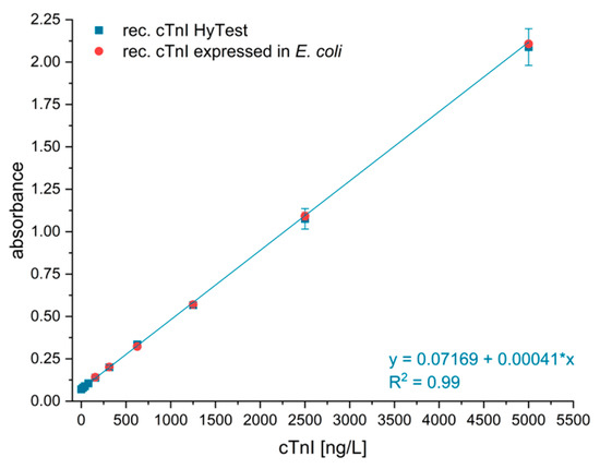 Quantification of cTnI expressed in E. coli using commercially available cTnI (Hytest 8RTI7) was used to calibrate the sandwich ELISA, as recommended by the supplier [31].