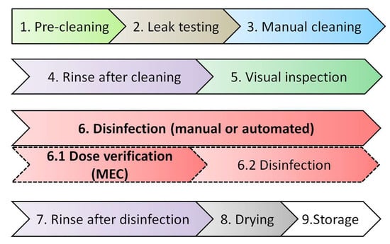 - Rutala, W.A.; Weber, D.J. Disinfection and Sterilization: An Overview. Am. J. Infect. Control 2013, 41, S2–S5. [Google Scholar] [CrossRef] [PubMed]