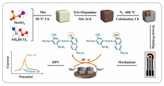 Schematic diagram of the synthesis of an electrochemical sensor based on the cubic structure of Mn3O4@C for the detection of AR. Reprinted from [77] with permission from Elsevier.