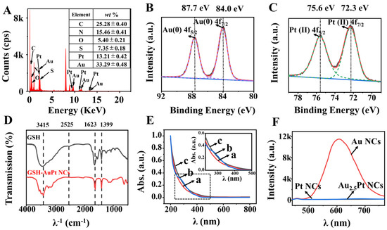 3.1. Synthesis and Characterizations of GSH-AuPt NCs