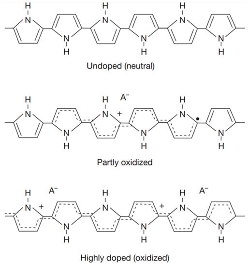 The PPy structures at different oxidation levels after the electrochemical or chemical doping [41].