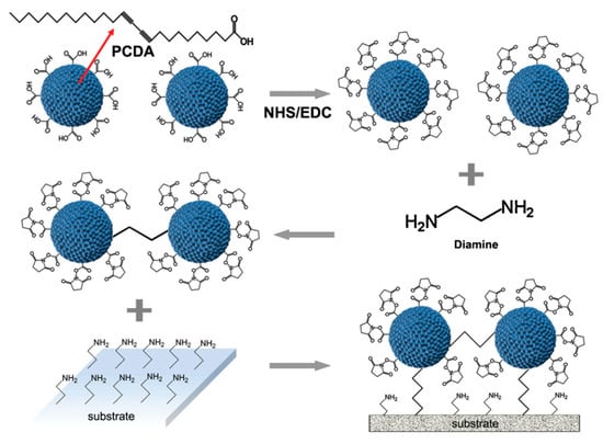 Schematic illustration of the preparation process of a substrate PDA biosensor based on crosslinking PDA liposomes and diamine for detection of pathogens [99].