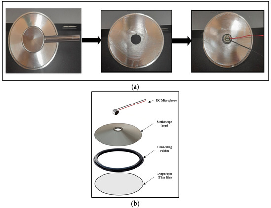 Stethoscope head design: (a) head modification; (b) head assembly.