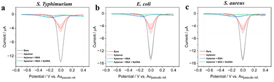 2.5. Construction of Electrochemical Biosensor for Different Types of Bacteria Detection