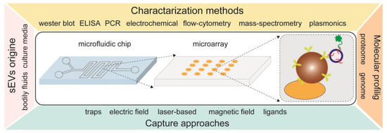 Immuno-affinity capture in the form of stand-alone particles or integrated technologies is the proposed solution to such problems, which allows isolating subpopulations of sEVs with minimal contamination. Although a limited number of subpopulations can be isolated in a short period of laboratory time [23], such methodology received attention in recent years because it allows directly quantifying sEV subpopulations according to their membrane markers and is compatible with further sEV analysis, such as PCR or mass spectrometry (MS).
