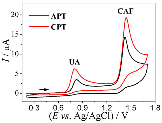 3.1. Voltammetric Profile of UA and CAF