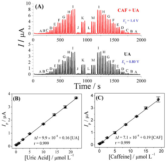 3.3. FIA-MPA of Uric Acid and Caffeine
