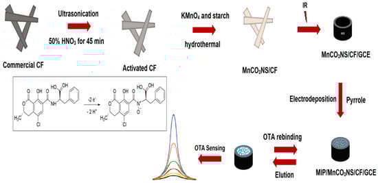 Preparation of MnCO3NS/CF composite and OTA imprinted electrode.