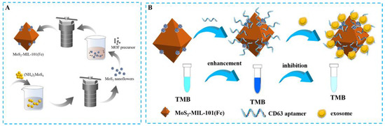 APA StyleLi, C., Guo, Z., Pu, S., Zhou, C., Cheng, X., Zhao, R., & Jia, N. (2023). Molybdenum Disulfide-Integrated Iron Organic Framework Hybrid Nanozyme-Based Aptasensor for Colorimetric Detection of Exosomes. Biosensors, 13(8), 800. https://doi.org/10.3390/bios13080800