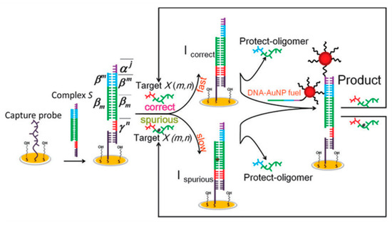 The main problem affecting hybridization stability is the specificity of hybridization, as the effect of individual base mispaired double-stranded overall stability is minimal [23]. The use of probes, such as binary DNA probes, molecular beacons (MBs), and DNA ligation forming probes, improves the stability and specificity of using structured probes compared to ordinary complementary strands [23,24]. However, many hybridization-based reactions cannot be multiply tested, confining the time of multiple sample interpretation [23].