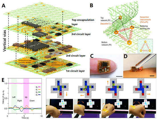 - Wang, Y.; Xu, C.; Yu, X.; Zhang, H.; Han, M. Multilayer flexible electronics: Manufacturing approaches and applications. Mater. Today Phys. 2022, 23, 100647. [Google Scholar] [CrossRef]