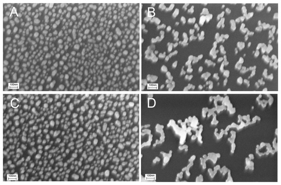 The surface morphology of the SERS substrates was studied with scanning electron microscopy using the electron microscope Supra 50VP (Zeiss, Oberkochen, Germany) with a resolution of 1.5 nm.