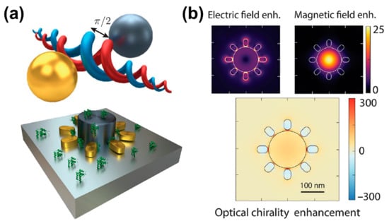 - Kumar, J.; Liz-Marzán, L.M. Recent Advances in Chiral Plasmonics: Towards Biomedical Applications. In Colloidal Synthesis of Plasmonic Nanometals; Jenny Stanford Publishing: Singapore, 2020; pp. 845–865. [Google Scholar] [CrossRef]