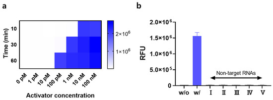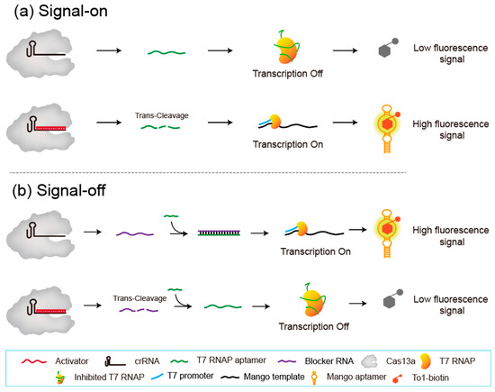 - Iwasaki, R.S.; Batey, R.T. SPRINT: A Cas13a-Based Platform for Detection of Small Molecules. Nucleic Acids Res. 2020, 48, e101. [Google Scholar] [CrossRef]