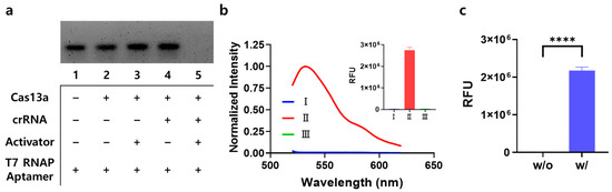 3.1. Working Principle of the Aptamer-Based Switching System for the Communication of Cas13a with T7 RNAP