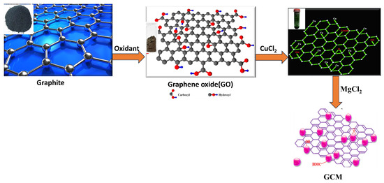 Detailed synthesis process of graphene oxide–copper oxide-doped (GCM) fine powder.