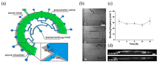 - Hu, L.; Ge, A.; Wang, X.; Wang, S.; Yue, X.; Wang, J.; Feng, X.; Du, W.; Liu, B.F. Real-Time Monitoring of Immune Responses under Pathogen Invasion and Drug Interference by Integrated Microfluidic Device Coupled with Worm-Based Biosensor. Biosens. Bioelectron. 2018, 110, 233–238. [Google Scholar] [CrossRef] [PubMed]