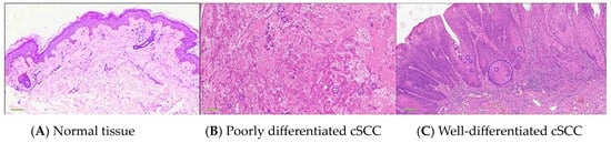3.4. Poorly and Well-Differentiated cSCC Was Identified via Nuclear Atypia and Keratin Pearls