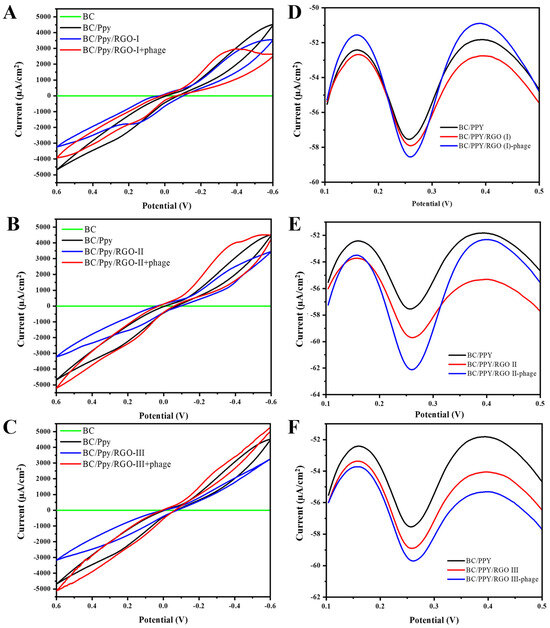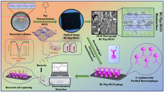 3.6. Development of BC/Ppy/RGO–Phage Biosensor