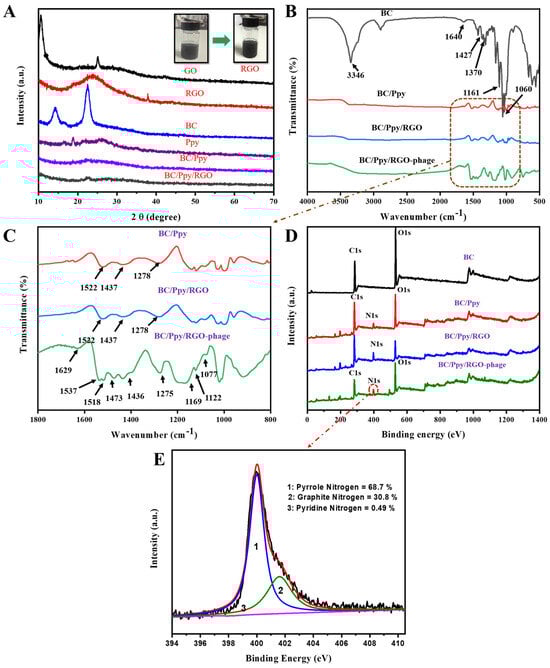 3.2. Morphology and Chemical Structure of the BC/Ppy/RGO–Phage Biointerface