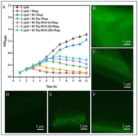 2.7. Immobilization of S. typhimurium-Specific Phages on BC/Ppy/RGO Biointerface