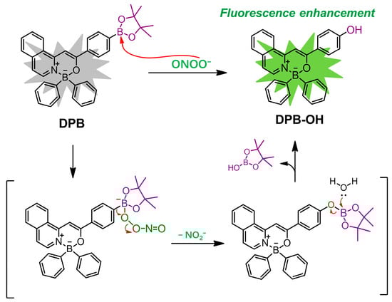 Proposed recognition mechanism of DPB probe for ONOO−.