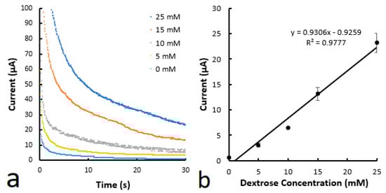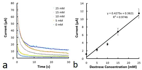 Figure 5a), and the observed current at 30 s under each concentration was used to create a calibration curve (
