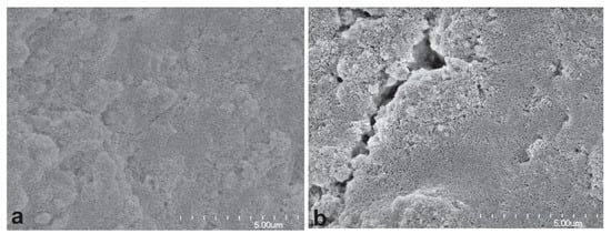 Figure 6b). The pore sizes of the former are also smaller than those of the latter.
