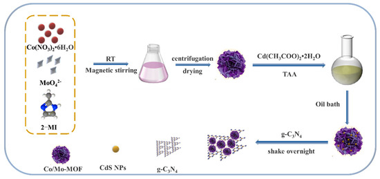 2.6. Preparation of CdS@Co/Mo-MOF@g-C3N4