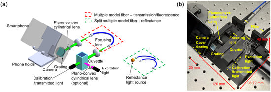 - Yu, H.; Tan, Y.; Cunningham, B.T. Smartphone Fluorescence Spectroscopy. Anal. Chem. 2014, 86, 8805–8813. [Google Scholar] [CrossRef] [PubMed]