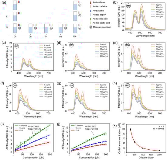 - Smith, J.; Loxley, K.; Sheridan, P.; Hamilton, T.M. Analysis of Caffeine in Beverages Using Aspirin as a Fluorescent Chemosensor. J. Chem. Educ. 2016, 93, 1776–1780. [Google Scholar] [CrossRef]