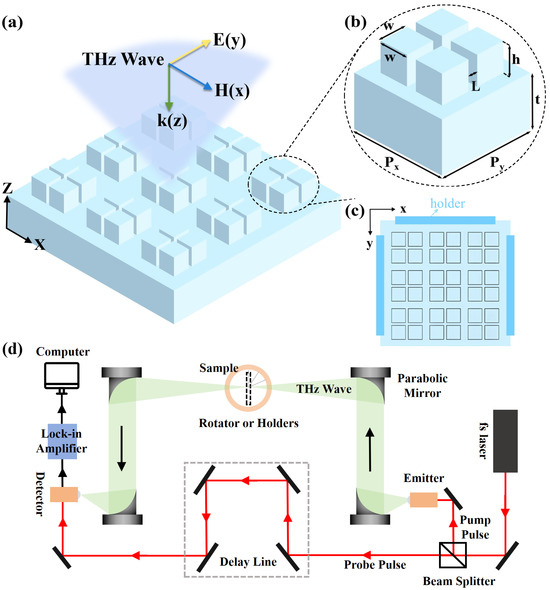 - Liu, P.; Li, W.; Chen, N.; Ma, C.; Li, X.; Yan, D. Enhancing the terahertz absorption spectrum based on the low refractive index all-dielectric metasurface. Photonics 2022, 9, 848. [Google Scholar] [CrossRef]
