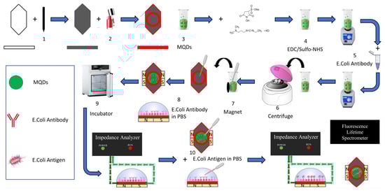- Bai, X.; Ga, L.; Du, Y.; Ai, J. Carbon quantum dot-based label-free fluorescent biosensor to detect E. coli. IEEE Sens. J. 2024, 24, 25284–25290. [Google Scholar] [CrossRef]