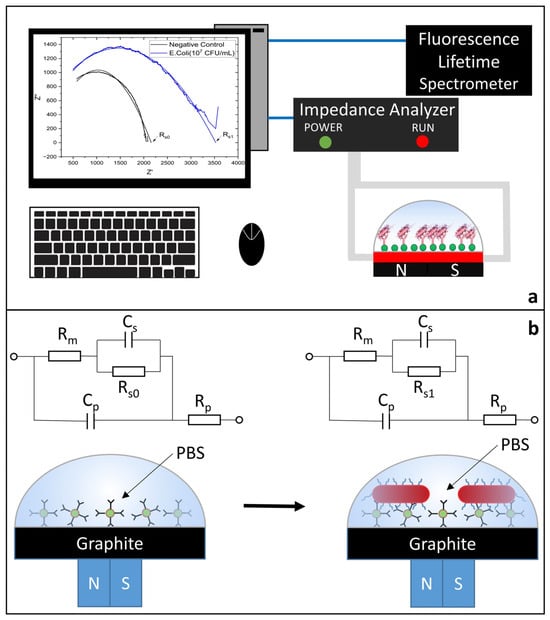 - Wang, S.; Sun, C.; Hu, Q.; Li, S.; Wang, C.; Wang, P.; Zhou, L. A homogeneous magnetic bead-based impedance immunosensor for highly sensitive detection of Escherichia coli O157: H7. Biochem. Eng. J. 2020, 156, 107513. [Google Scholar] [CrossRef]