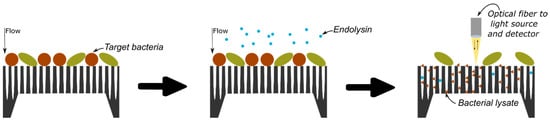 Finally, the modeled sensor was fabricated using a combination of microfabrication techniques, and the protocol of detection was tested using B. cereus as the model bacterium and the (bacterio)phage-encoded PlyB221 endolysin as the selective lytic enzyme [27,28].