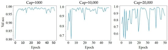 Dynamic range adjustment impacts model stability, as reflected in Figure 4. By capping the maximum intensity at different thresholds (1000, 10,000, and 20,000), we observed varying effects on validation accuracy stability over epochs. A cap of 1000 maintained more consistent validation accuracy, whereas higher caps, such as 10,000 and 20,000, led to greater fluctuations. This can be attributed to the way light intensity values are normalized, impacting the model’s ability to discern patterns within the data. The cap of 1000 likely offers a more focused range, reducing the influence of extreme pixel intensity values that could destabilize the learning process. The dataset, from a single day and sample of the E. coli and beads, provided a controlled environment to assess these effects.