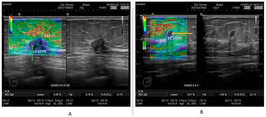 One of the most extensive studies about elastography and the F/L index is that of Togawa et al. []. That research group studied 1288 women with BI-RADS 3 and 4a–4c lesions through B-mode ultrasound, evaluating SWE with the F/L index. F/L values were contrasted with biopsy results. They found 368 (28.6%) malignant tumors. After evaluation with conventional B-mode ultrasound, 53.8% of benign lesions by biopsy were classified as BI-RADS 4, corresponding to false positives. In contrast, after ultrasound evaluation, only 1.39% were classified as BI-RADS 3 but were positive after biopsy (false negatives). Our findings showed similar results; however, 66.66% of benign biopsies at our site were classified as BI-RADS 4a–4c (false positives). We hypothesize that this divergence could be because Togawa et al. used SWE, different from our study. Also, the populations were ethnically diverse, and breast tissue composition differs between Caucasian and Asian populations. Notably, the Mexican population has significant Asian ancestry [,].